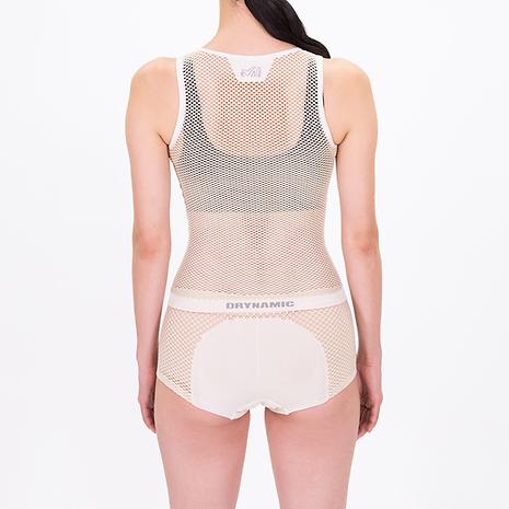 一年を通して発汗による"冷え"と不快感を軽減する、究極のドライ感を実現した次世代のアンダーウェア(肌着)。外気温の影響を受けにくいポリプロピレンをベースに、かさ高メッシュで編み上げることで肌面の汗を素早く吸収し、上位のベースレイヤーに拡散します。さらに汗を吸ったベースレイヤーはメッシュの厚みによって肌から遠ざけられ、肌面の冷えを防ぎ、ドライ感を保ちます。他の衣服とより組み合わせやすいノースリーブタイプ。