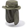 環境に配慮したリサイクルナイロン素材を使用したサンシールドハットです。本体のメッシュ部とシールド部には虫よけ加工をプラスし、頭頂部とバイザーには遮熱効果が高いシートを内蔵しています。スナップボタンで簡単に取り外しができるシールド部は、首周りの日焼け対策に効果的。両サイドにバイザー止めのスナップボタン付きで、あご紐は取り外し式。後部のアジャスターコードにより頭周りのフィット感の調節が可能です。UVケア(UPF15-30、紫外線カット率85%以上)機能付きで、日差しが強い春の残雪期から幅広いシーズンで活用できます。
