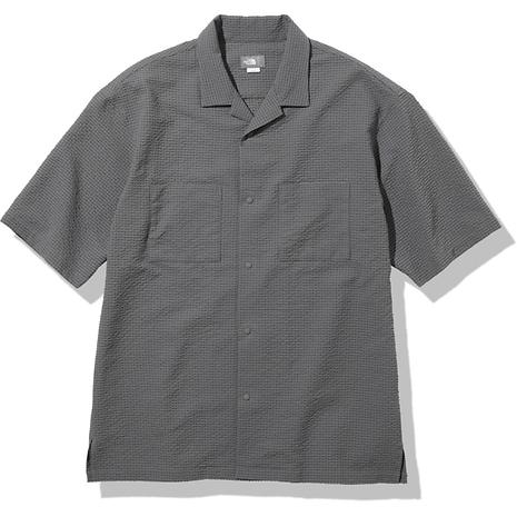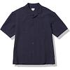 シアサッカー素材を使用した、清涼感のある開襟シャツ。複数の通気穴による高い通気性が特徴のメッシュ構造のサッカー生地を採用。軽量のポリエステル捲縮糸により、ストレッチ性とドライな着心地を実現しています。生地に撥水加工を施し、多少の雨は弾きます。UVケア(UPF15-30、紫外線カット率85%以上)機能付き。ゆったりしたサイズ感で、外出時はもちろん、家でのリラックスシーンにも着用しやすいデザインです。