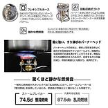 広い火口に多数の炎口を設けた「整流燃焼」のため、燃焼音が静かです。74.5d。(燃焼音例、他社製品87.5db)