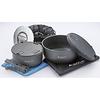 保温力を高めるコジー、様々な使い方ができるリッド(フタ)、トングとしても使えるリフターなど機能性も多様なクッカーセット。