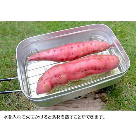 メスティン本体は、携行性を考え薄いアルミを使用しています。このメッシュトレイを燻製に使用したり、水気の少ない状態で調理したりするとメスティン本体が熱損することがありますのでご注意ください。